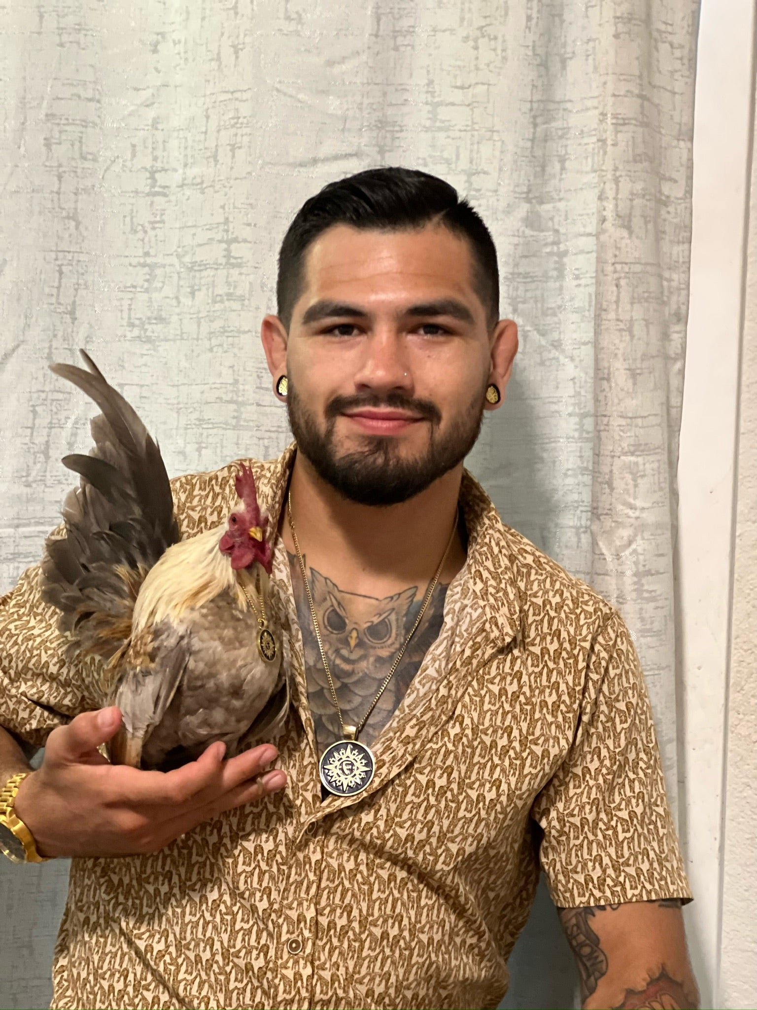 “Con orgullo” means “with pride.” Anthony “Fluffy” Hernandez is a proud UFC fighter and family man. He stands tall, even when strikes and takedowns come flying at him. His pet rooster, “El Cock,” has become his own celebrity, ruffling feathers daily, beginning at dawn.